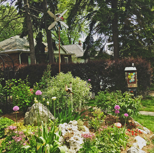 Garden with book box and whirly-gig Posted on May 30, 2015 by Eugene Knapik Share this: Share on X (Opens in new window) X Share on Facebook (Opens in new window) Facebook Like Loading...